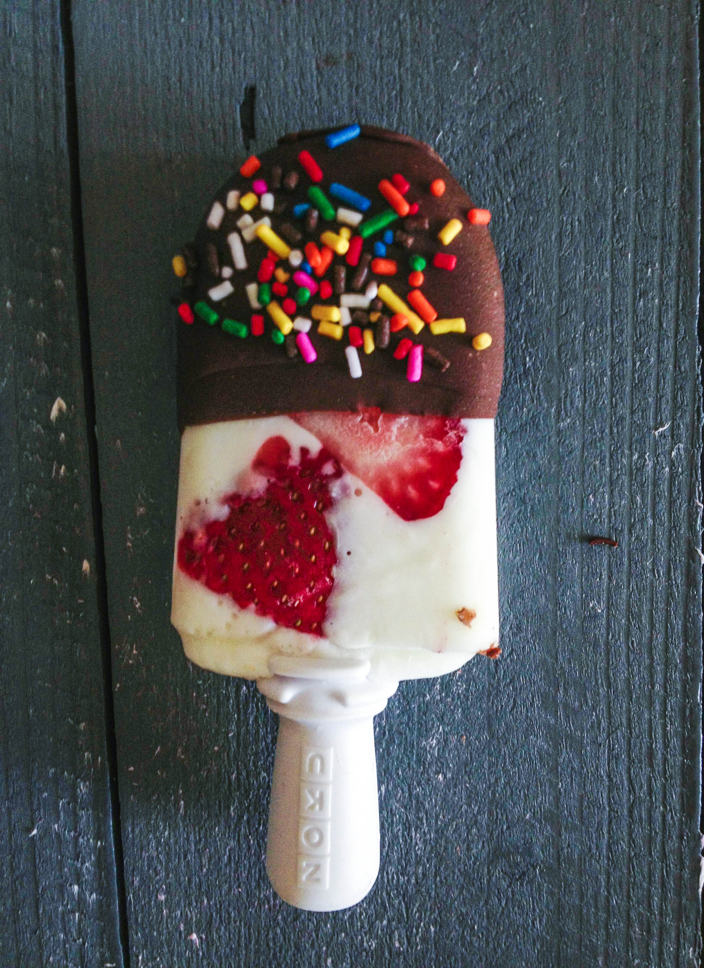 2. Let the mixture cool to room temperature so that it doesn’t melt your frozen treats, then go to town! If the mixture is too thick for your liking, add a little more coconut oil.
