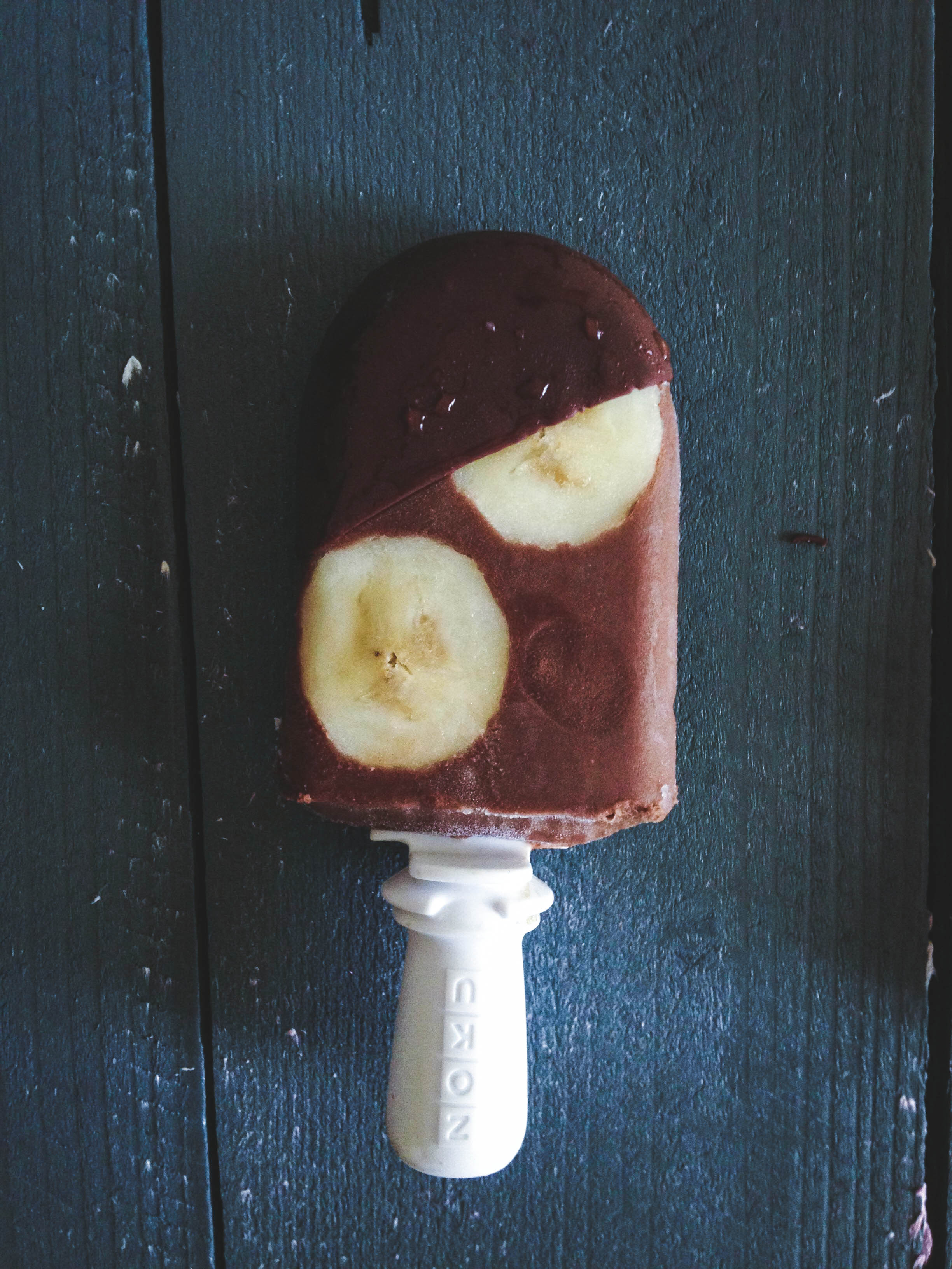 Apparently, coconut oil remains in a solid state up to about 76 degrees (thanks Wikipedia!), which explains why chocolate shell quickly hardens when drizzled on top of ice cream and frozen pops, creating that “magic” effect that we all know and love.