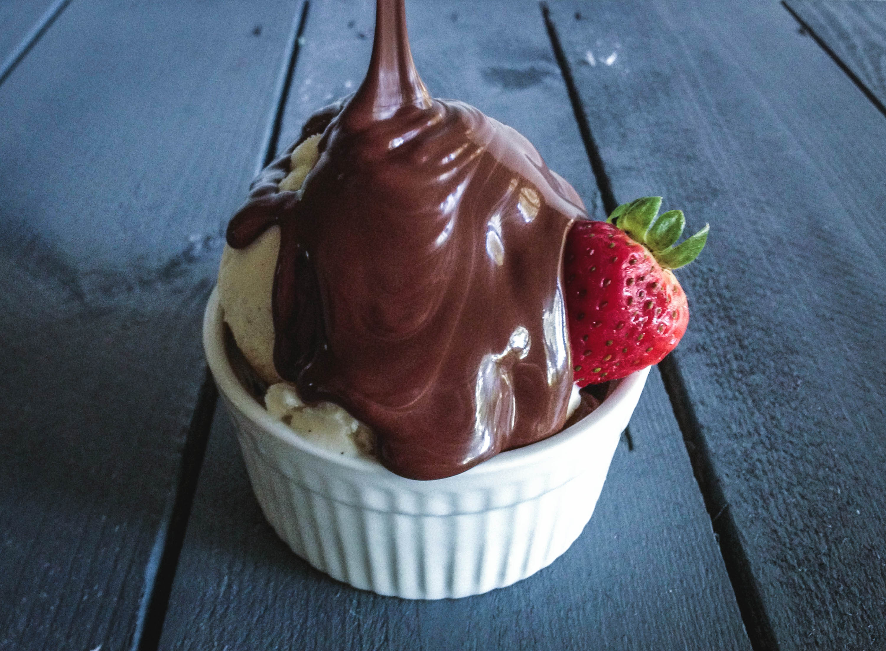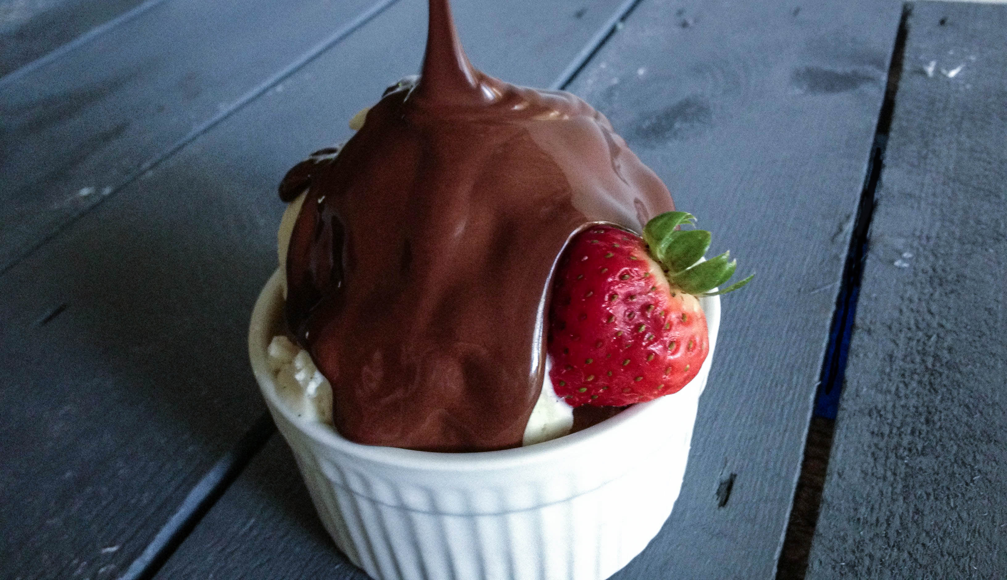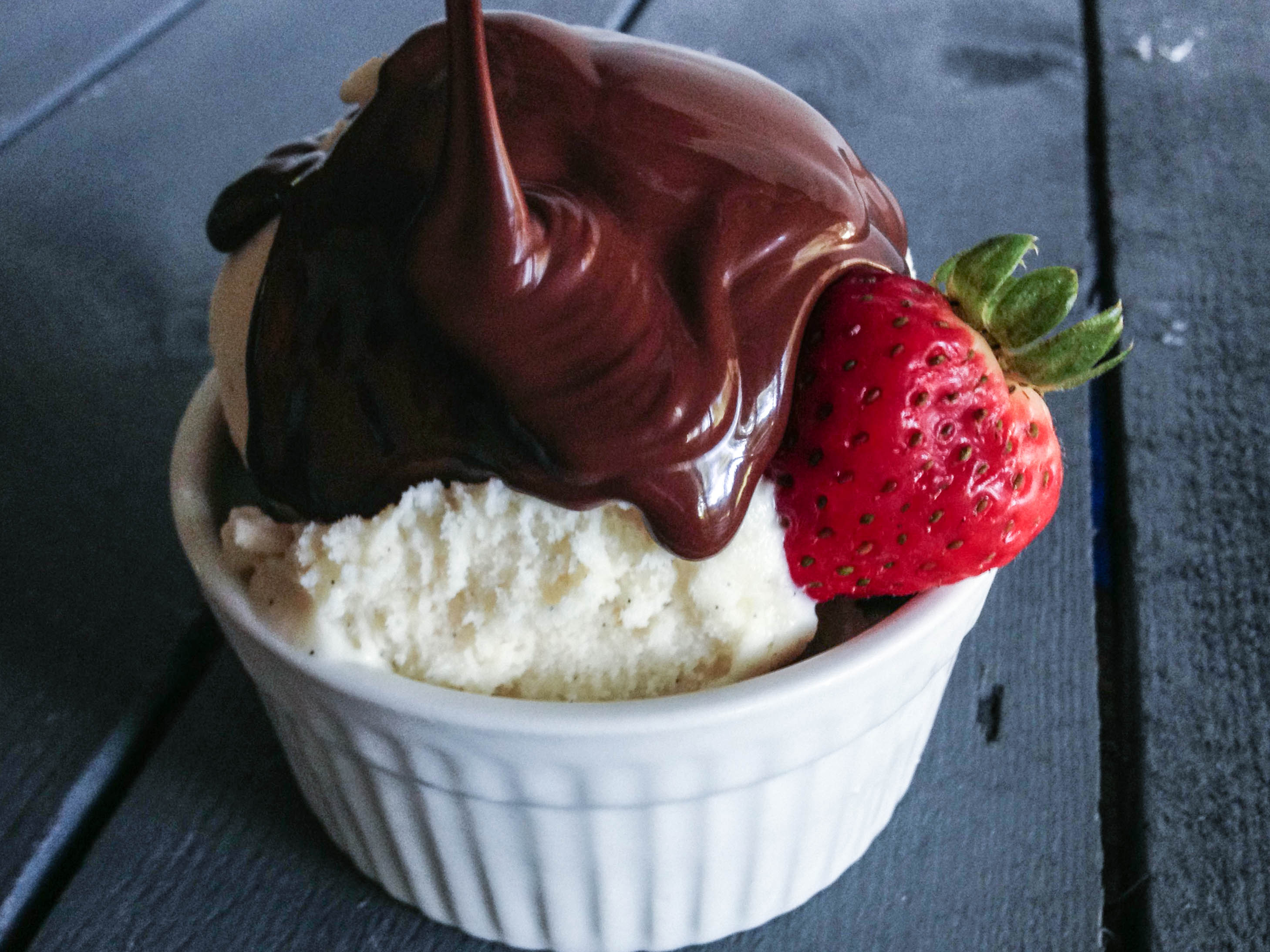 With homemade chocolate shell, plain vanilla becomes a chocolatey paradise!