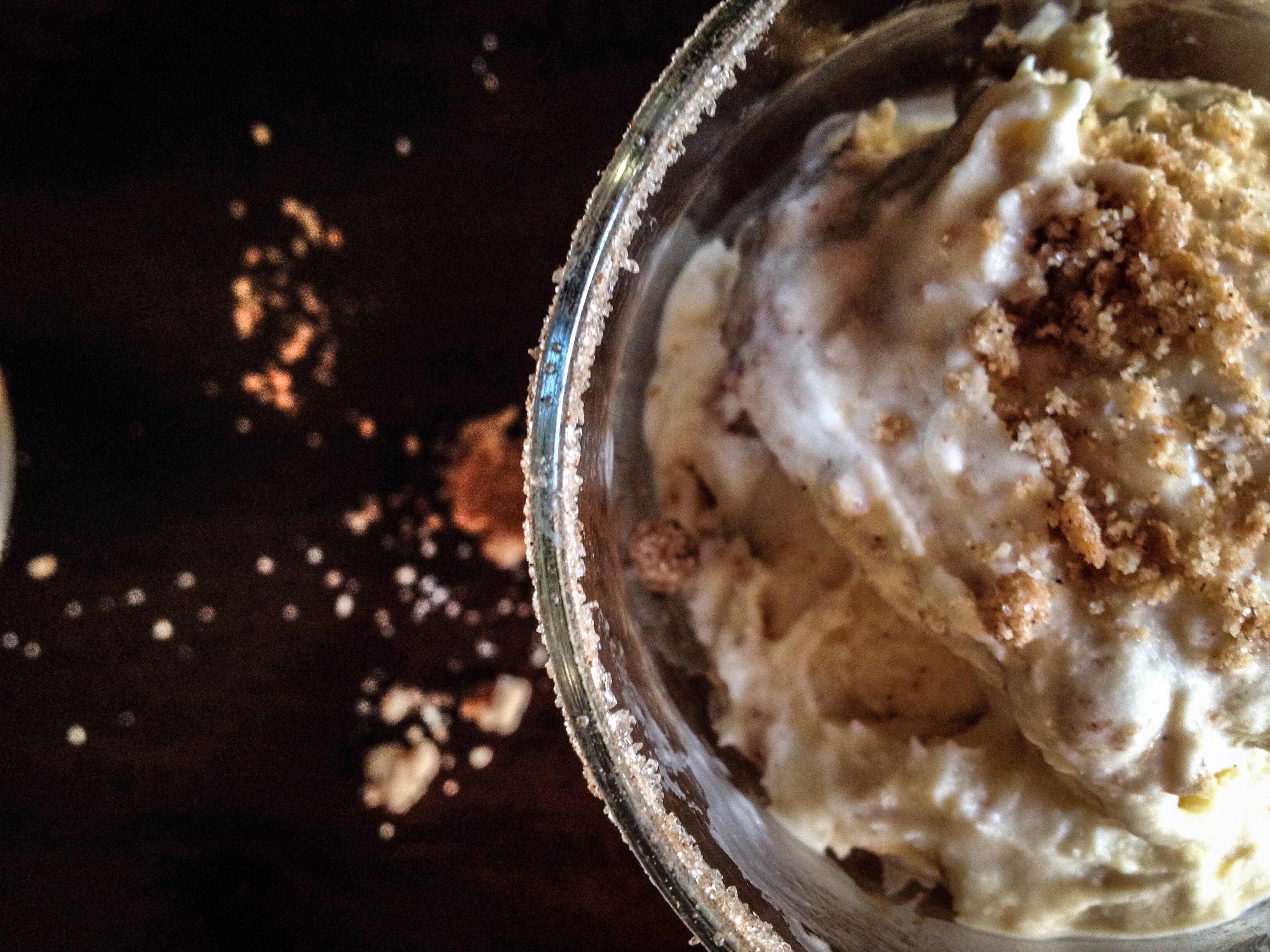 The result? Rich and creamy, soft and smooth, boozy but not too boozy. This stuff is pretty darn perfect. I’ve also added a ginger and cinnamon graham cracker swirl – reminiscent of the cinnamon sugar mixture that many bars in town use to rim the glasses in which Christmas Ale is served.