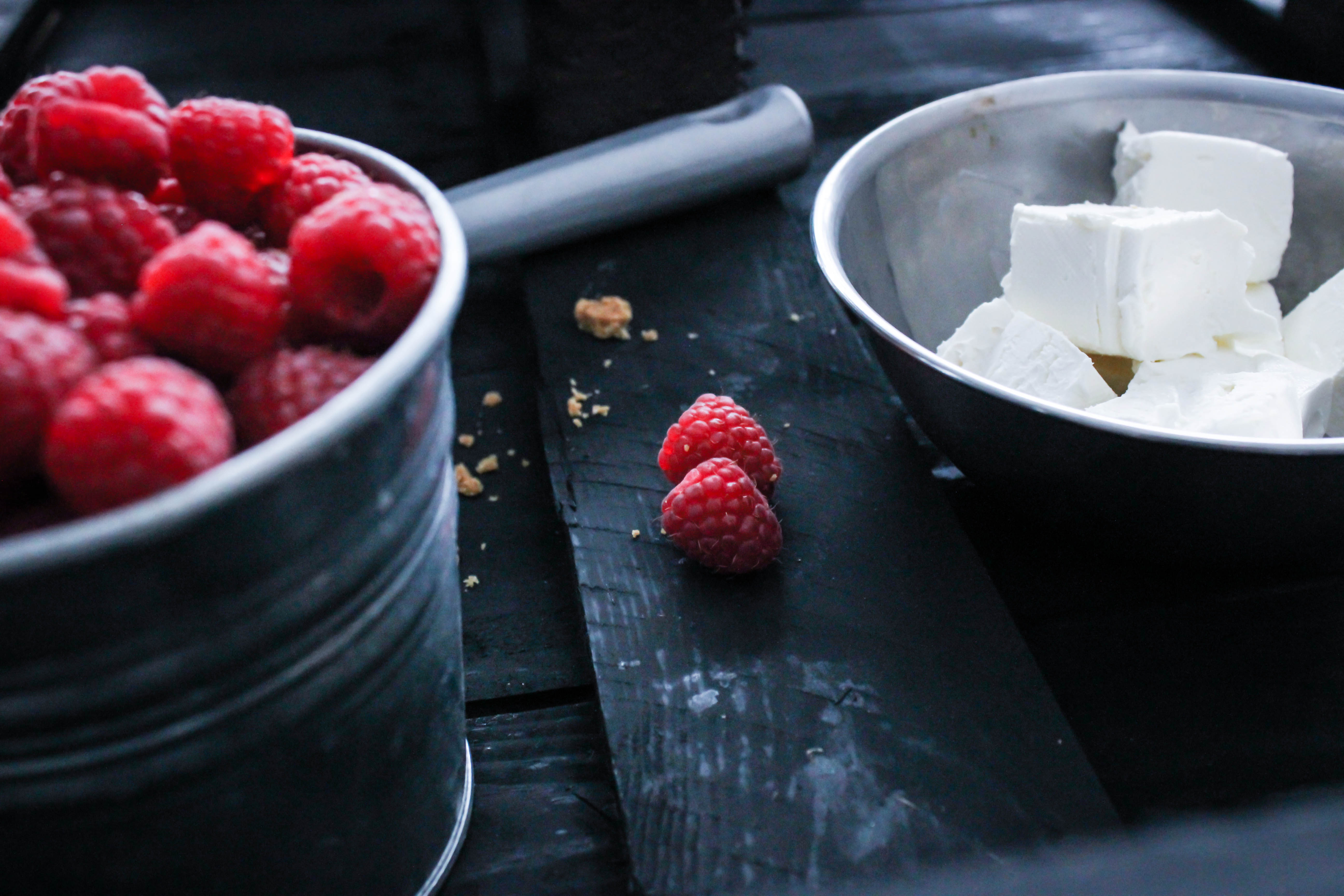 Cheesecake is my fiancé’s favorite, especially the New York style variety. No bells and whistles, just a plain slice with slight drizzles of raspberry or strawberry sauce. Classic yet modern, understated but bold. Sort of like a certain guy I know 🙂