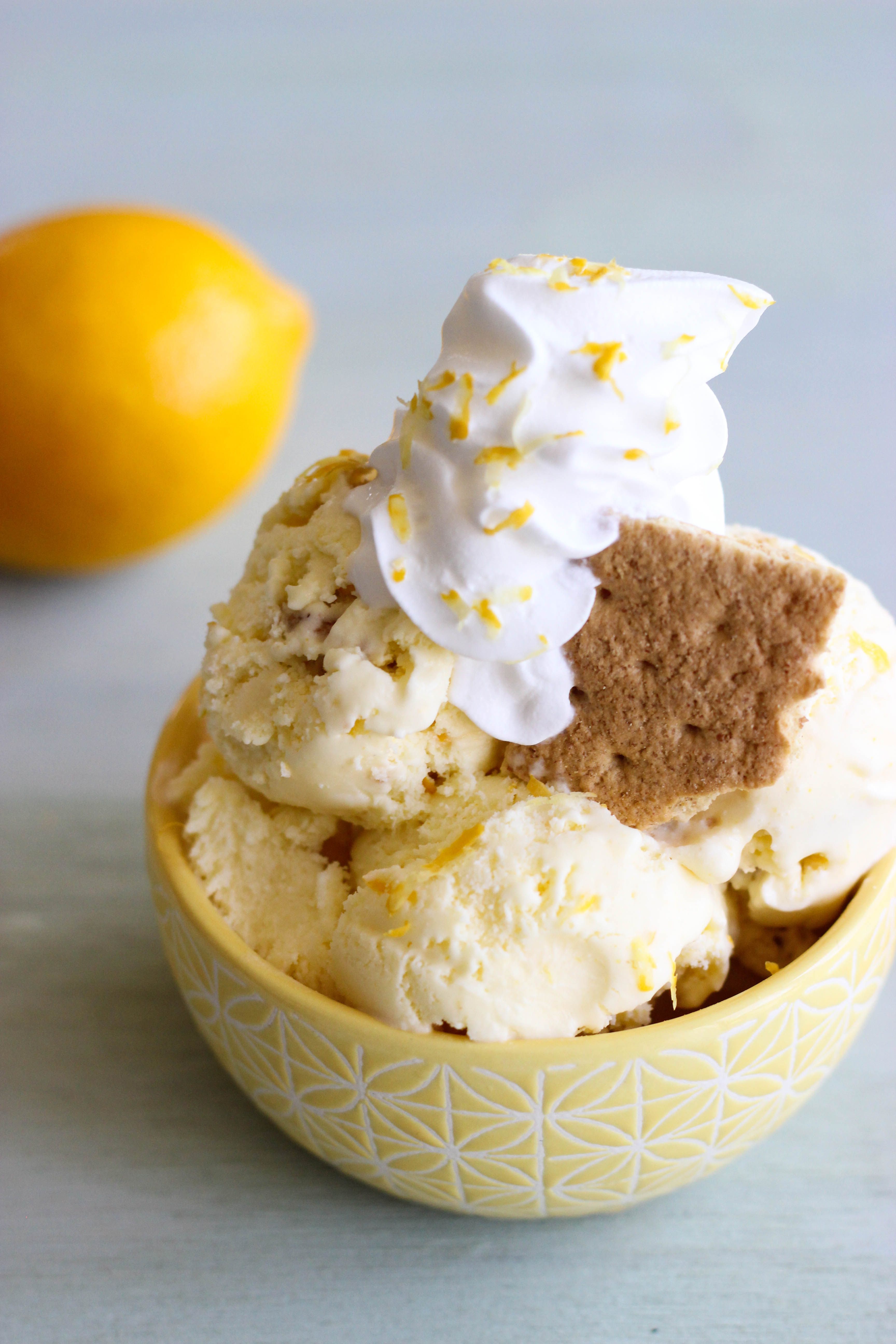 And I was not disappointed. Sweet and fragrant, tart and juicy, these lemons really pop when set against a backdrop of cold, luscious ice cream. And because I need everything to be over the top, I went to town adding in several handfuls of buttery, salty, graham crust pieces. The result is an ice cream that’s very Key Lime Pie-ish, but with distinctly delicious floral and sweet undertones.