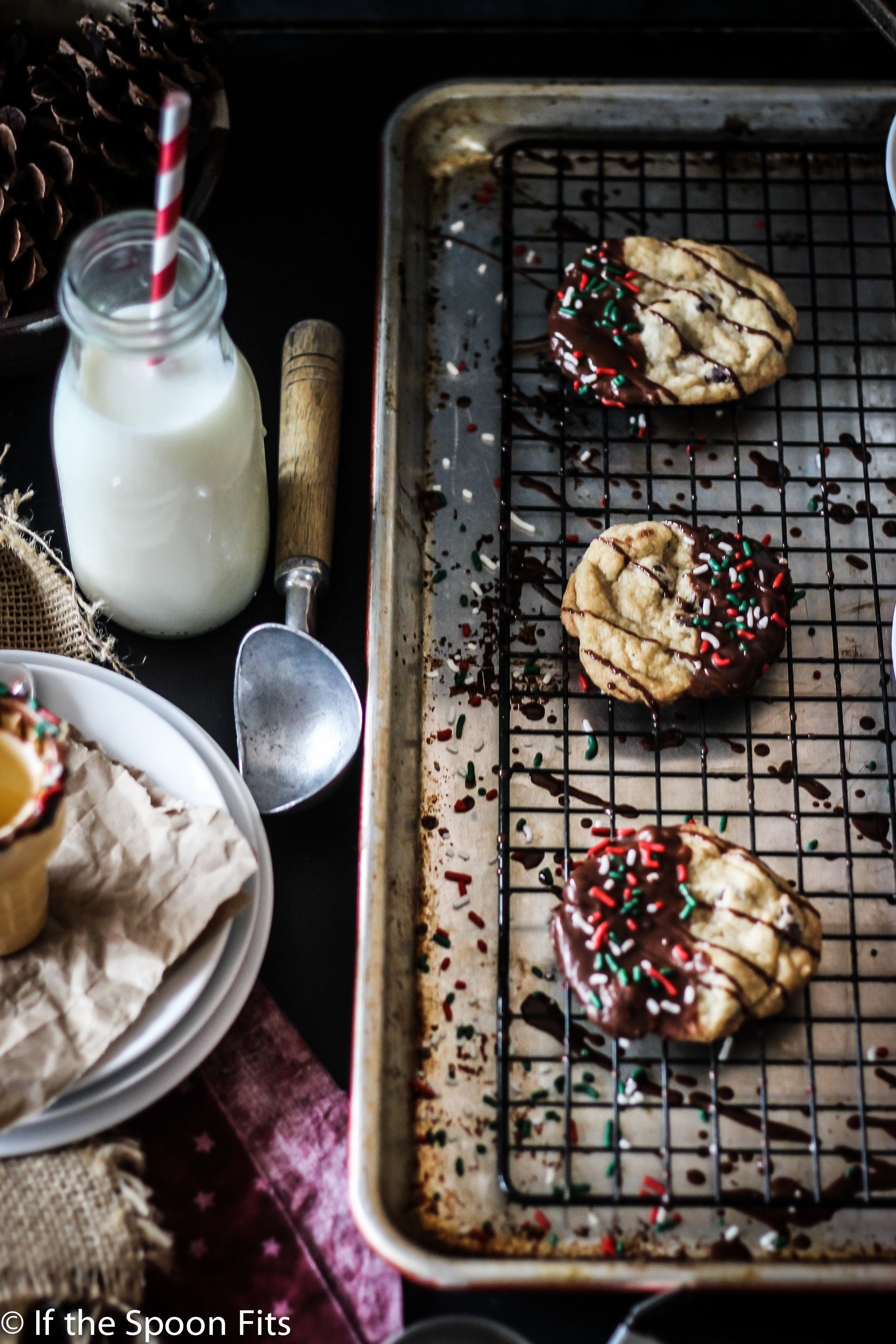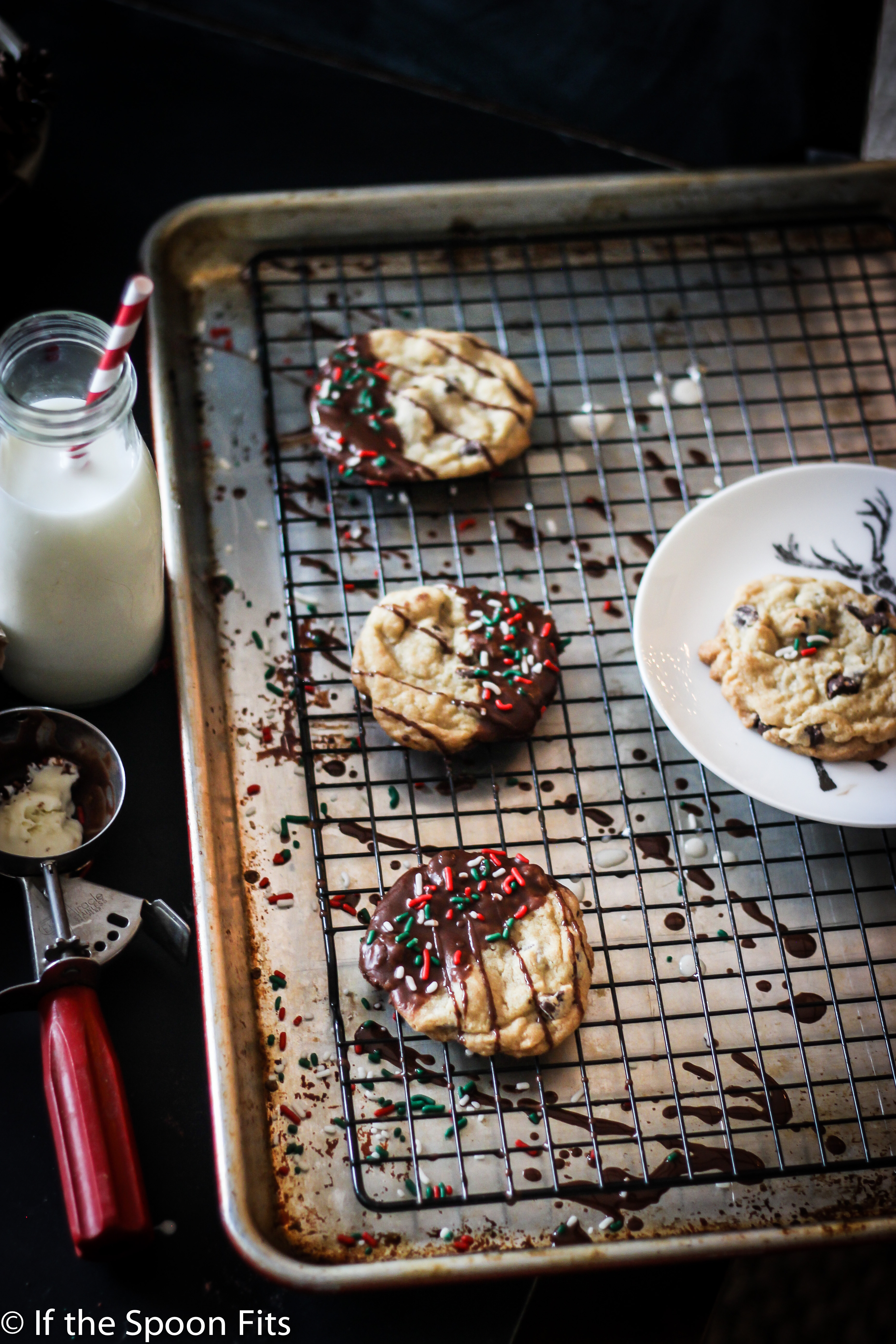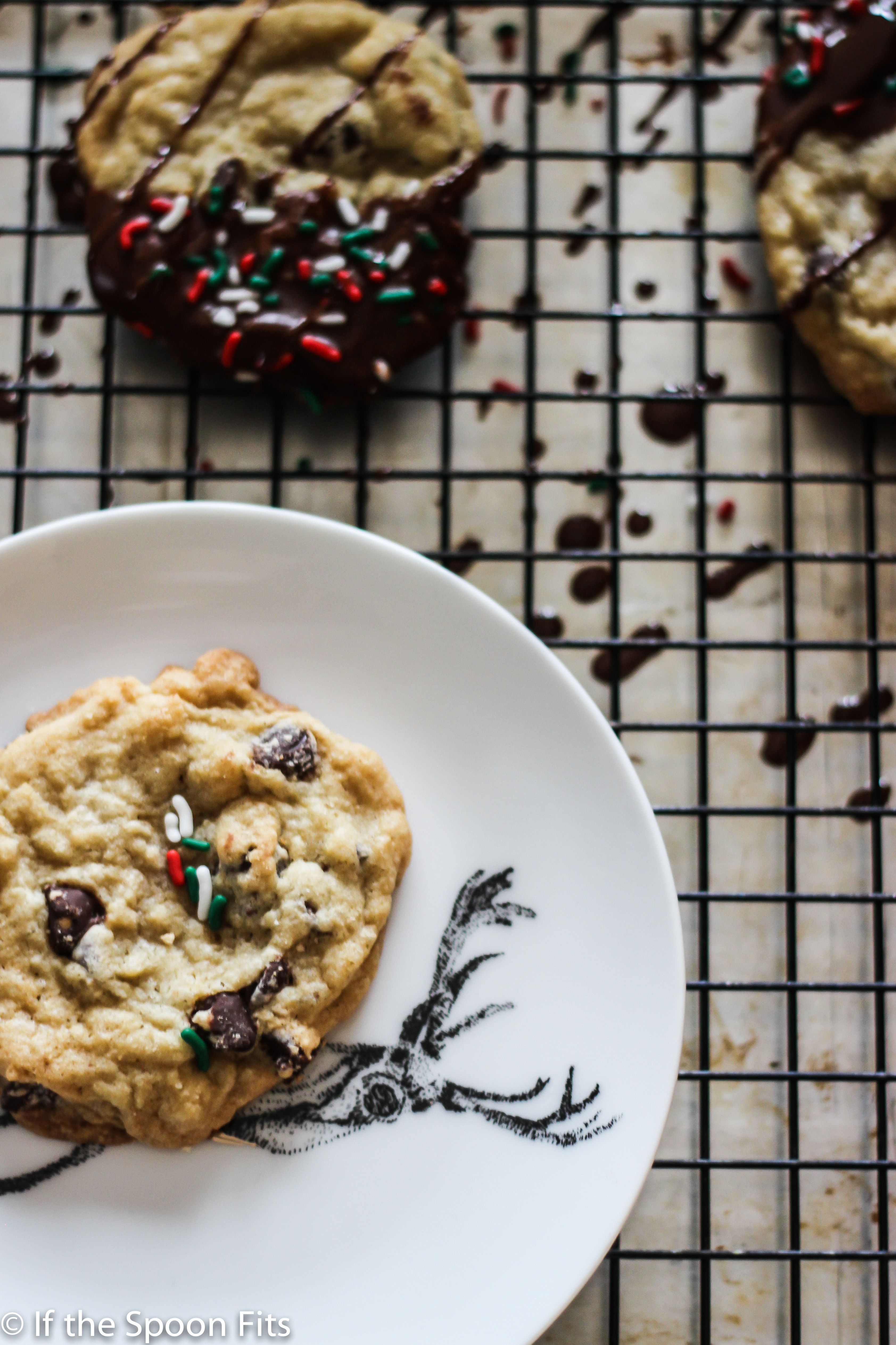 I scrutinized each plate, searching desperately for my favorite – a simple chocolate chip – but those were always few and far between, like some afterthought hidden between layers of dry, Santa-shaped sugar cookies outfitted in a delicate film of pink icing that was masquerading around as “red” (EVERYONE KNOWS YOU NEED TO USE THE GEL FOOD COLORING TO OBTAIN THE PERFECT SHADE OF SANTA RED ARE YOU KIDDING ME WITH THIS S***?!).