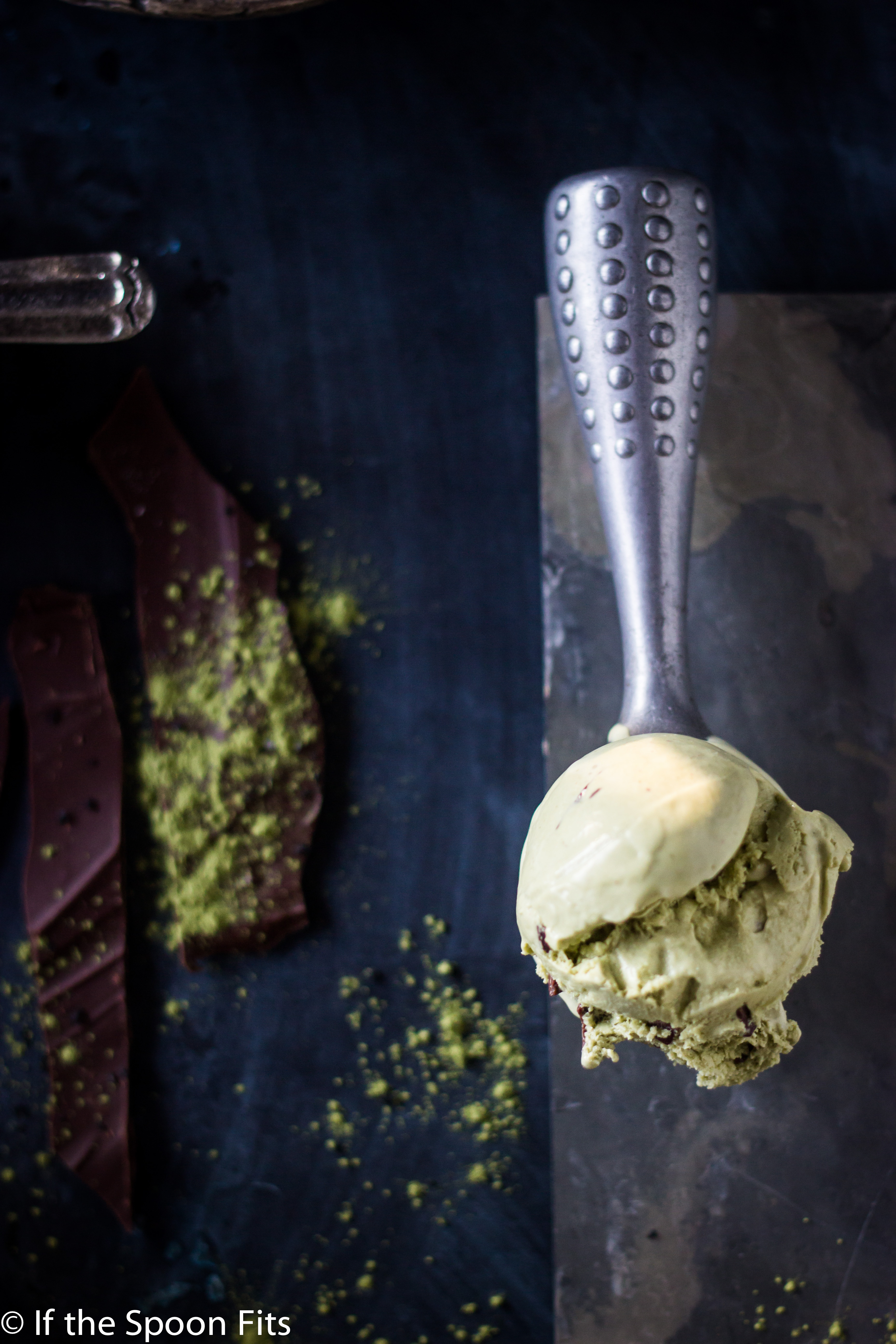 Matcha Ice Cream with Black Salt Chocolate Chunks