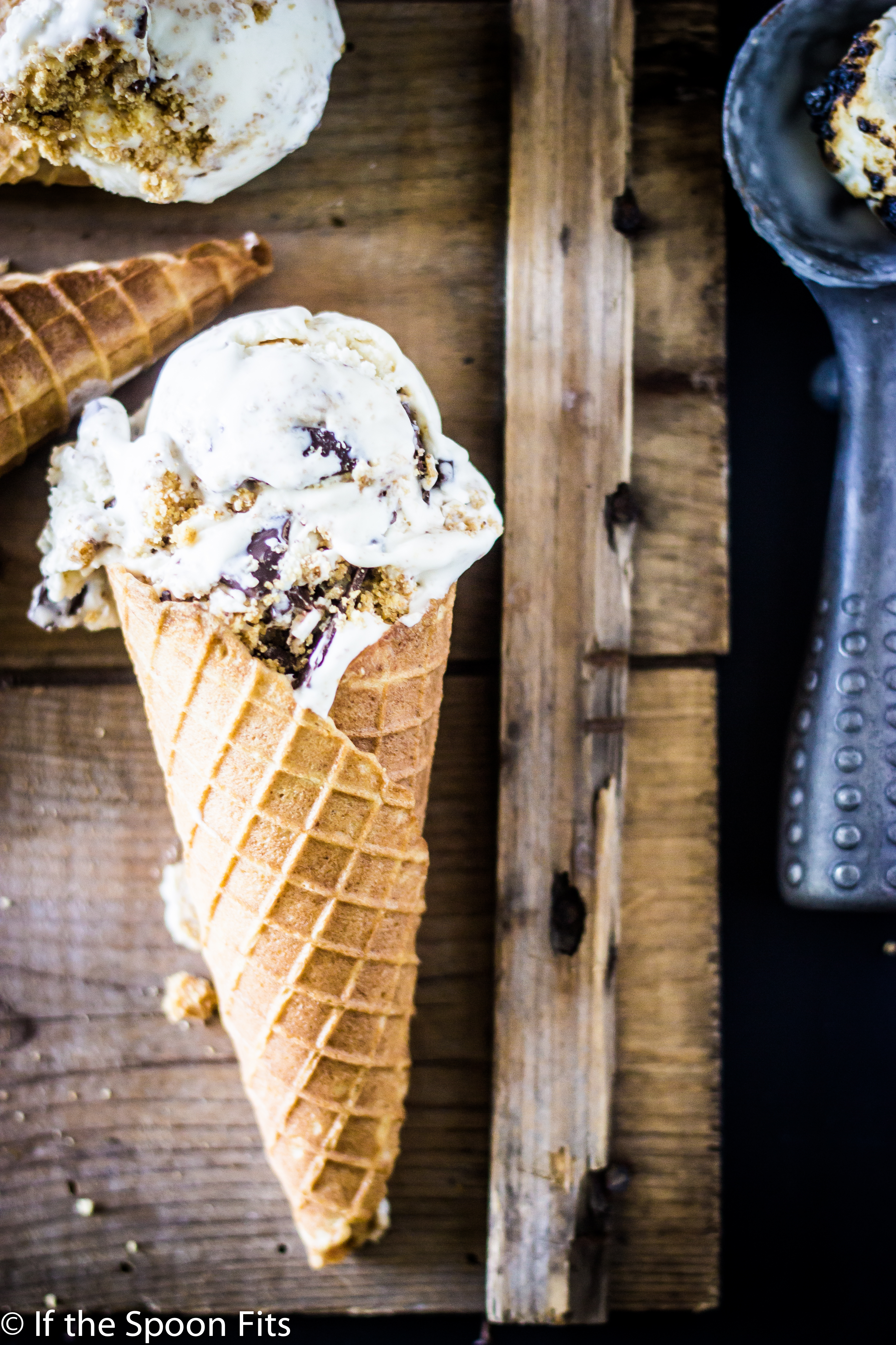 I made my own chocolate chips so that they would have a nice truffle-like texture in the sea of marshmallow cream, and put together some make-shift salty graham cracker “cookie” chunks by mixing some butter, sea salt, and graham crumbs and melting it all together in the microwave. I then swirled these throughout my ice cream base so that every bite contained salty-sweet goodness.