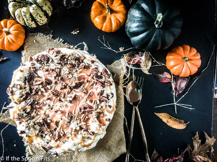 1. Remove your frozen pie from the freezer. Top with whipped cream, and any extra caramel and pecans.